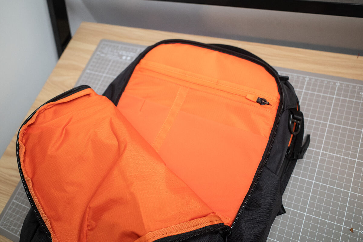 Aer makes an X-Pac* version of all their bags, with waterproof zippers AND it’s orange on the inside. THE PERFECT BAG.